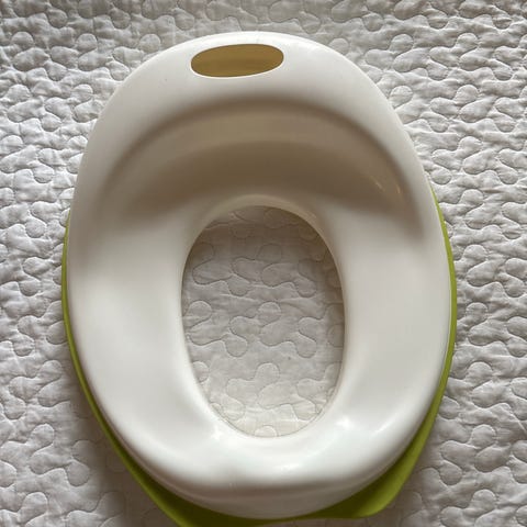 Annetaan IKEAn potta ja wc-istuimen supistaja. Lapsi liimannut pottaan muutaman tarran. Vain nouto.