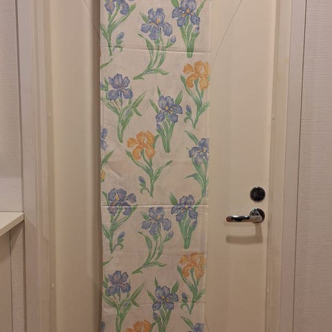 On vain tämä yksi verho, jos ei käyttöä yhdelle, tästä voi ommella kauniit verhokapat kesäikkunaan ja kaksi kapeampaa verhoa.