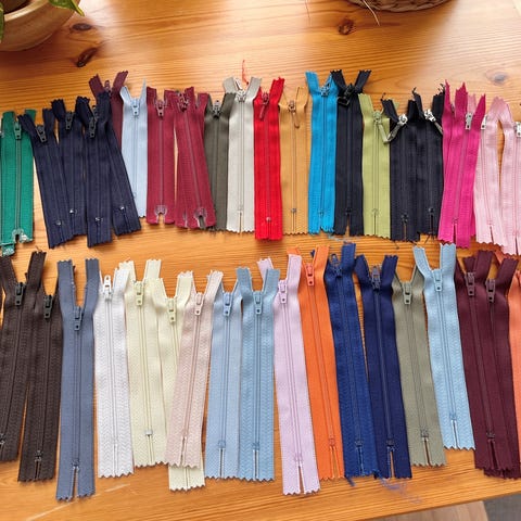 Suurinosa 10cm mittaisia. Vetoketjut käyttämättömiä. 9kpl lukittuva vedin, 1kpl piilovetoketju.