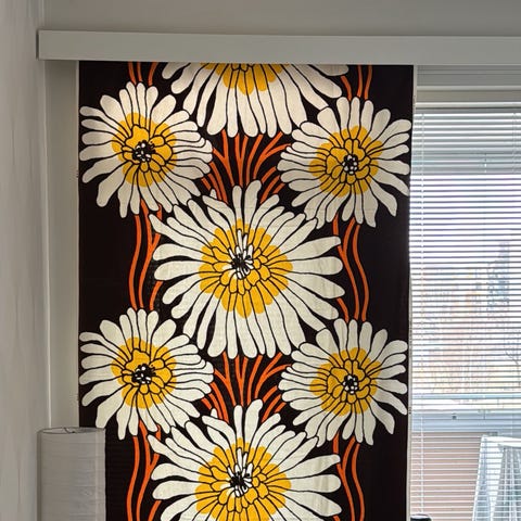 Marjatta Seppälän suunnittelemat upeat verhot Tampellalle. Paksuhkoa napakkaa puuvillaa. Näitä harvoin saatavilla.