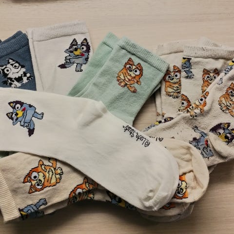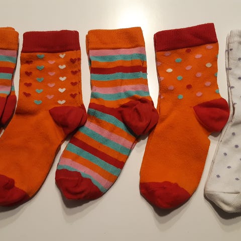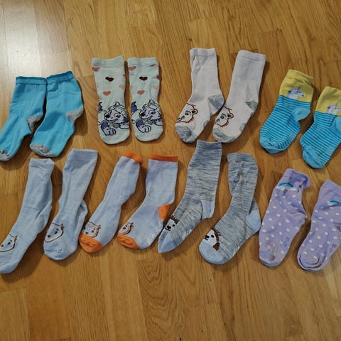 Käytetyt, siistit sukat kokoa noin 31-33. Yhteensä 11 paria.