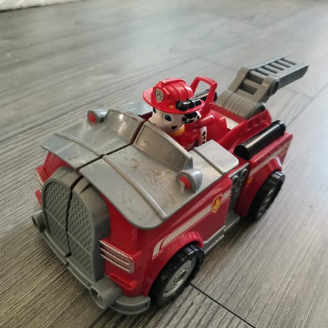 Myydän kuvan mukainen ryhmä hau lelu auto ja hahmo. Ehjä ja toimiva mutta pientä kulumaa on.