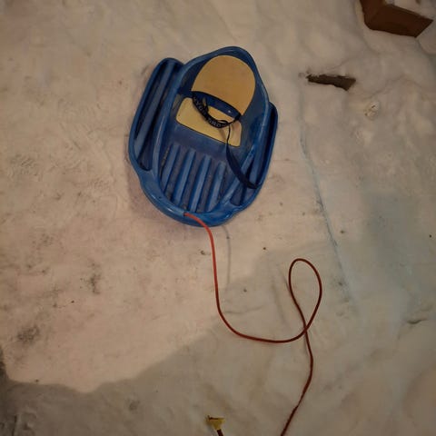 Annetaan pulkka taaperoille. Käyttökelpoinen vaikka pohjassa on reikä (ks. kuva)