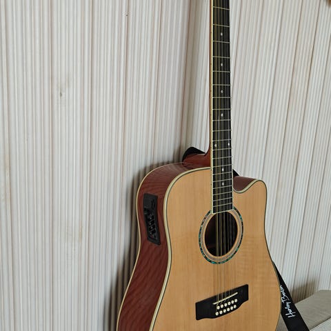 12-kielinen harley benton HBD-200-12BK elektroakustinen kitara, dreadnought-mallinen koppa ja leikkaus (cutaway), musta.