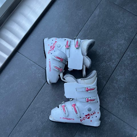 Rossingol comp J4 lasten laskettelumonot, Koko 245 mm (285 mm merkintä takana). Väri musta-keltainen. Neljä solkea.