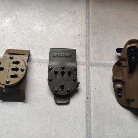 Käytetty mutta hyvässä kunnossa, pito säädettävissä. Tähän vaihdettu alkuperäisen klipsin tilalle Ulticlip joka mahdollistaa kantamisen ilman että housuissa on vyötä, toimii toki myös vyön kanssa.