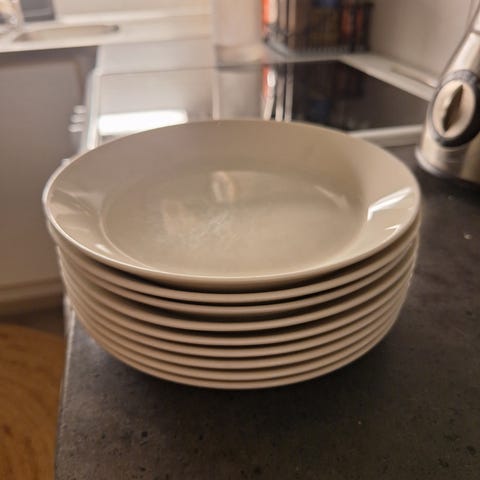 Myydään 6 kpl vähäisellä käytöllä olleet valkoiset Iittalan teema lautaset 17cm. Lautaset ovat ehjiä ja siistejä.