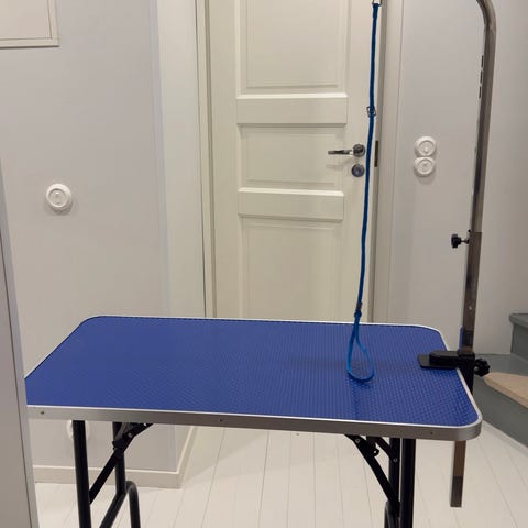 Hyväkuntoinen trimmauspöytä, koko 50x70 cm. Näppärä vetää perässä. Taittuu pieneen tilaan.