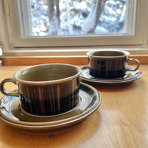 Kupit hyväkuntoiset. Lautasten lasituksessa vähän pintavirheitä. Ei kuitentaan saröjä.