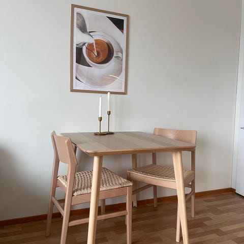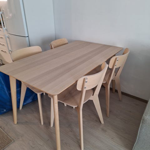 Todella siisti ruokaryhmä, mustaa saarniviilua. Mukaan kaksi kaunista Vallilan pyöreää kerniliinaa. Tällä hetkellä Ikeassa hinta 423€, tarkat tiedot Ikean sivuilta: https://applink.ikea.com/tY8M9r9M4w--79554907--fi--fi