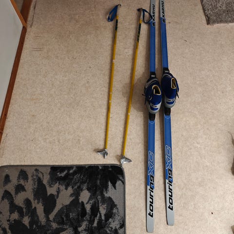 Sukset, monot 38-39, sauvat n. 125 cm
