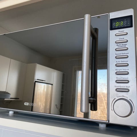 Gram mikroaaltouuni valkoinen, jossa on digitaalinen näyttö ja painikkeilla sekä säätönupilla ohjattavat toiminnot. Laitteessa on lasinen pyörivä lautanen ja sisävalo.