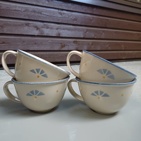 Hienossa kunnossa olevat Pentikin kahvikupit ja lautaset 4kpl. Myynnissä myös toinen 4kpl:n setti.
