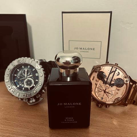 Jo Malone Myrrh & Tonka Cologne Intense -hajuvesi 100 ml. Tuoksu kuuluu puumaiseen tuoksuperheeseen. Tuoksun kuvauksen mukaan siinä on laventelin vivahteita, sydäntuoksuna namibialainen mirha ja pohjatuoksuna tonkapapu. Pullo on tummaa lasia ja siinä on metallinen korkki. Sopii käytettäväksi päivittäisenä tai iltatuoksuna eri tilanteissa.