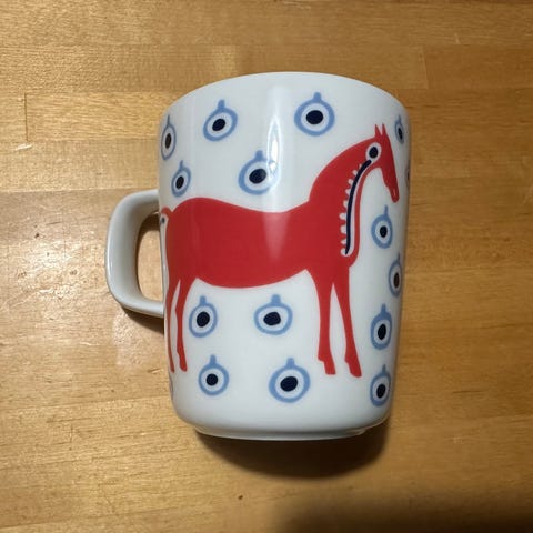 Musta Tamma muki 2.5dl oranssinpunainen, Hevosen vuosi 2026 Marimekko