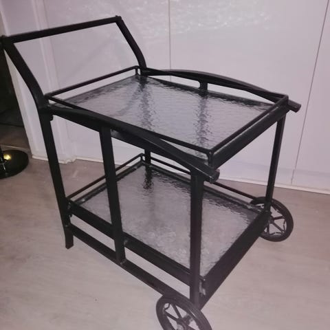 Musta metallinen säilytyskärry, jossa on kolme verkkopohjaista säilytyskoria.