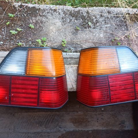 Volkswagen takavalot. Kuvissa näkyy kaksi kappaletta takavaloja, joissa punaiset ja tummat linssiosat. Sopivuus mk2 Golf , ostajan on hyvä varmistaa yhteensopivuus oman auton kanssa mittojen ja liitinten perusteella. Takavalot myydään parina.
