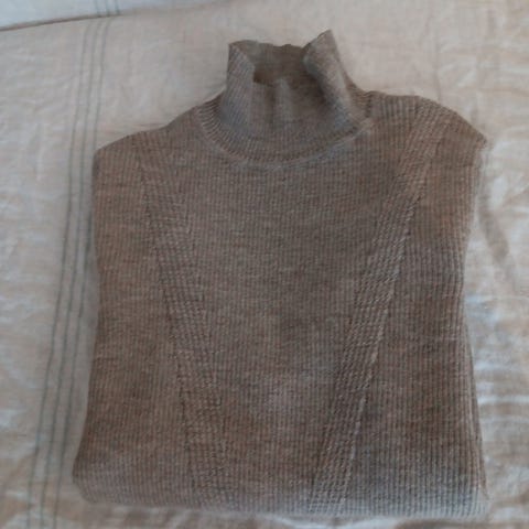 Neuletta on vain tuuletettu, ei pesty. Säilytetty viikattuna hyllylle, ei henkarissa roikkuen.