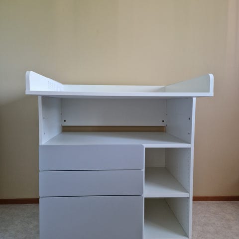 Myydään Hemnes-lipastoon tehty hoitopöytä. Hoitotaso irrotettava ja toimii jatkokäytössä pelkkänä lipastona. Mukaan kaksi hoitoalustaliinaa.