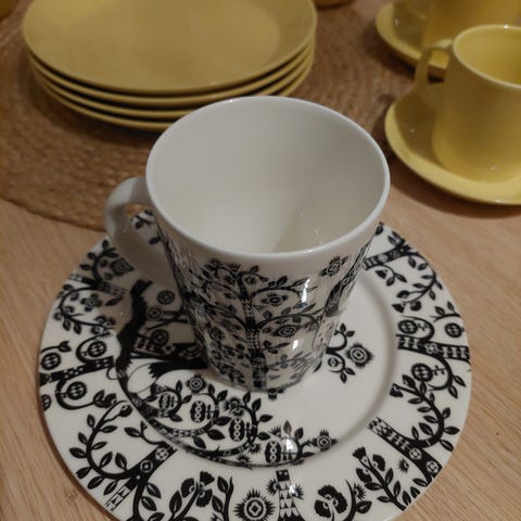 4kpl Iittalan valkoisia kahvi- tai teekuppeja aluslautasineen. Olleet ehkä 1-2 kertaa käytössä. Ehjiä eikä naarmuisia. Vanhempi leima pohjassa.