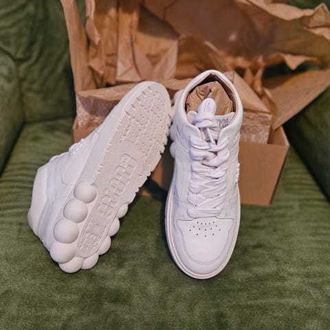 Väri valkoinen. Päällinen sileää nahkaa, nauhakiinnitys. Malli on matalavartinen ja siinä on paksu, muotoiltu kumipohja. Kengissä irrotettava sisäpohjallinen. Soveltuvat arkikäyttöön ja vapaa-aikaan.