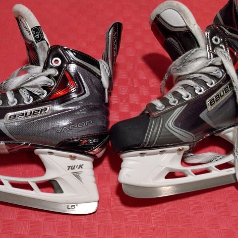 Bauer Vapor jääkiekkoluistimet, koko EU 38 Teräpitimenä TUUK Custom+ -terä, suunniteltu jääkiekkoon. Väri pääosin musta–harmaa. Sopivat nuorelle tai pienijalkaiselle pelaajalle harjoitus- ja pelikäyttöön.