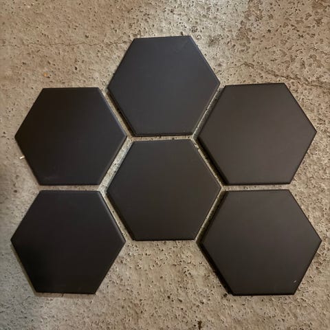 Myydään Pukkilan Natura 6-kulmainen laatta, 1 paketti + kaupan päälle 1/4 paketti. 10x11,5 cm. Väri vaalea beige.