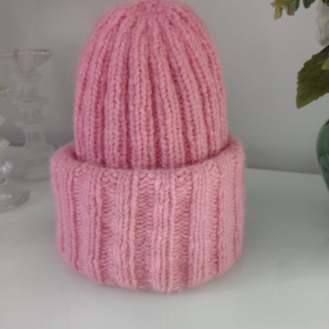 Käsin tunturineuleella kudottu muhkupipo, väri mantelinruskea. Koko n 58/60, kolminkertainen käänne. Lämmin!