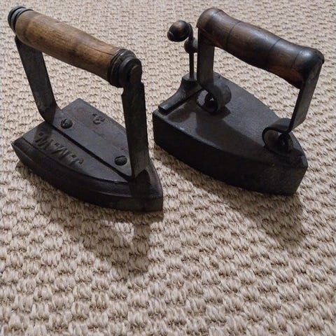 Myydään pieni ja vanha valurautainen silitysrauta. Paino 344 g, korkeus 10 cm. Alkuperäinen puukahva ja kaunis tumma patina. Merkitön malli, todennäköisesti 1800–1900-luvun vaihteesta.