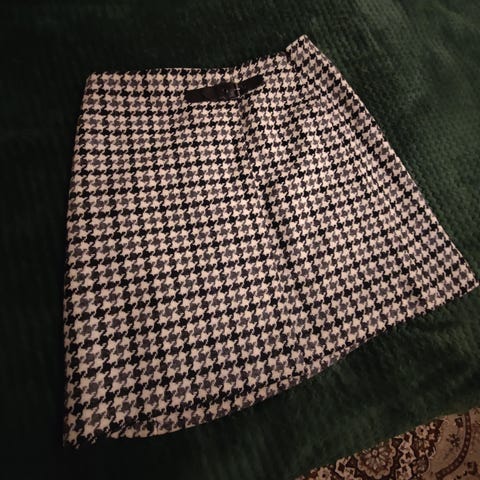 Sara Kelly by ellos villasekoitehame klassisella koiranhammaskuvioinnilla. 49% polyesteriä, 36% villaa, 13% akryyliä ja 2% polyamidia. Mustavalkoinen takana vetoketju. Laadukas hame, jäänyt täysin vaille käyttöä. Koko: 38 kynämalli. Nouto Kuusankoski myös lähetys onnistuu.
