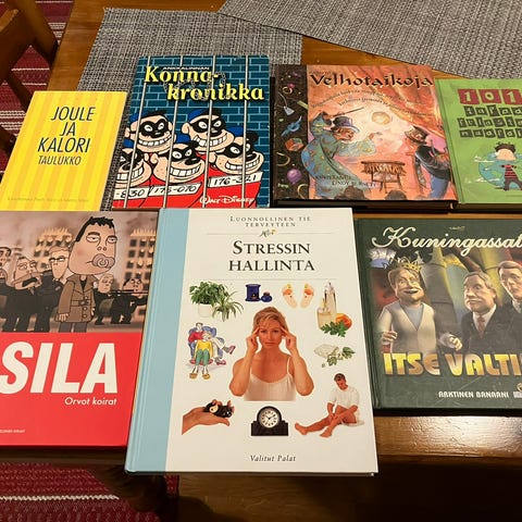 Luontokirjasarja, tarinota ja kuvia luomen luonnosta. Lintukirja, jossa hyvin havainnollistettu lintuja. Opi Ruotsia helposti Aku Ankan kanssa. 5 kappale, myös luontokirjasarja