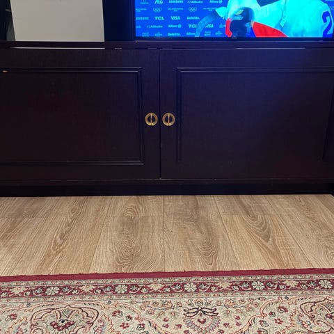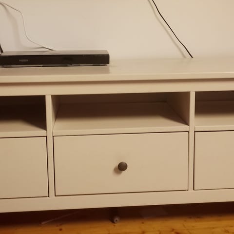 Rakenteeltaan hyväkuntoinen, mutta lakkaukseltaan hieman siistimistä vaativa senkki/lipasto/tv-taso. Ollut osa kirjahyllyratkaisua alakaappina.