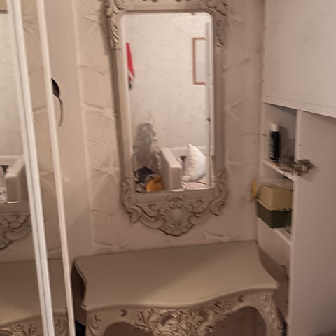 Peili K.140cm ja L.50cm. Konsolipöytä K.70cm, Syvyys 43.5 Leveys takaa 87cm ja edestä 78cm