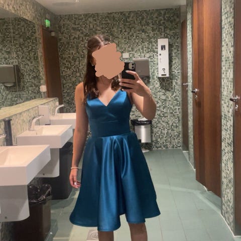 Mekko on kokonaan vuorattu ja siinä on tukiluut. Kuvan tyttö n. 170cm pitkä.