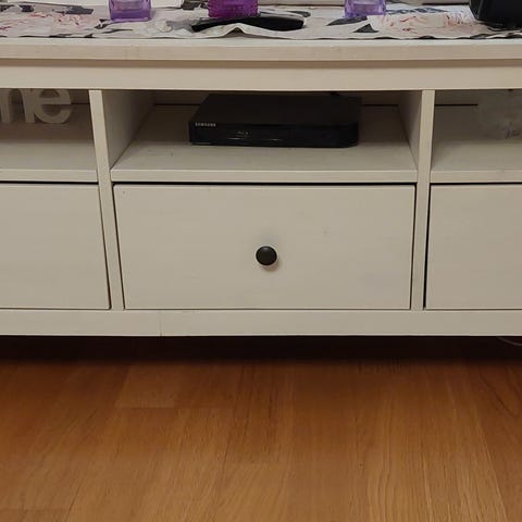 Vuosia palvellut jykevä tv-taso kolmella avolokerolla sekä kolmella vetolaatikolla. Kansilaudassa käytön jälkeä ja kulumaa näkyvissä. Tarkempia kuvia pyydettäessä. Ei reikiä tai murtumia rungossa tai laatikoissa.