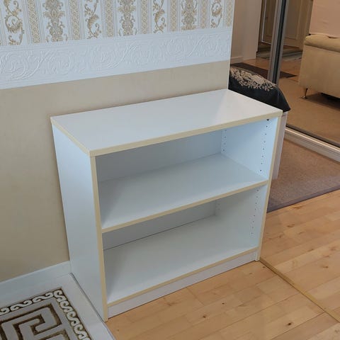 Erittäin hyväkuntoinen ja kaunis hylly lastenhuoneeseen, butiikkiin, ihan mihin vaan. Ostettu muutama vuosi sitten Kodin Ykkösestä, tällä hetkellä tätä ei enää taida saada Suomesta. Kolme irrotettavaa hyllylevyä, joissa on ulosliukumisen estävät kannatustapit, mutta hyllylevyjen paikka (korkeus) ei ole säädettävissä, ellet sitten itse poraa lisäreikiä kannatustapeille.