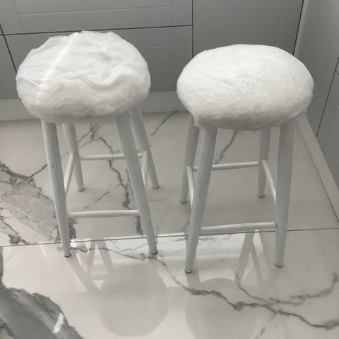 Puisia baarijakkaroita, jossa suorakaiteen muotoinen, kevyesti kaareva istuinosa ja nelijalkainen runko poikkipuilla. Tukevat istua Kuvissa näkyy 2 vaaleata ja 1 sininen jakkara. Sopii esimerkiksi keittiösaarekkeen tai baaritason ääreen istumiseen. Myydään 35 eur kpl tai kaikki yhdessä 90 euroa