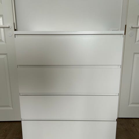 Myydään 2 kpl IKEA MALM -lipastoja, 3 laatikkoa, väri valkoinen.