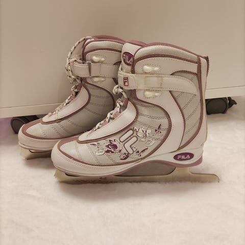 Yhdellä lapsella pari talvea käytössä olleet, muutamia kertoja käytetyt luistimet. Lämmin karvavuori. Bauerin teräsuojat mukaan. Pohjallisen pituus. n 23 cm. Pikainen nouto Kouvolan keskusta.