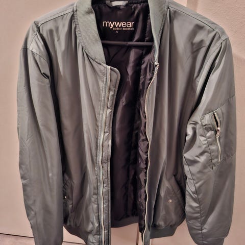 Pilottitakki musta, ohut, satiinipintainen, kerran päällä ollut. Koko 42-44