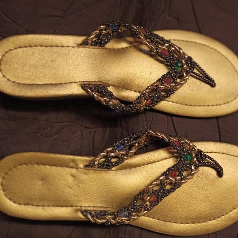 Sandaalit väri kiiltävä ruusukulta/hopea. Koko 41.