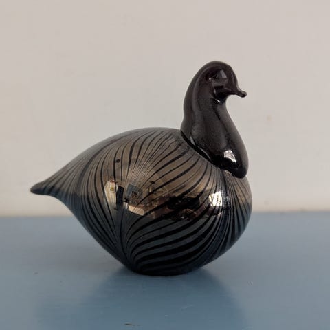 Pohjassa kaiverrus “Lasitorppa Erkki Finland” (osittain vaikeasti luettavissa) sekä sivussa signeeraus.