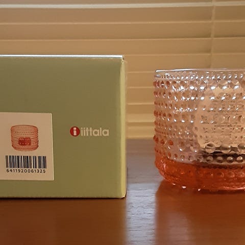 Iittala Kastehelmi kynttilälyhty lohenpunainen.