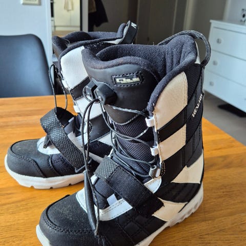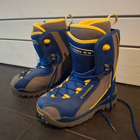 Salomon Talapus Junior lumilautakengät lapsille. Koko EUR 34,5 (USA 2,5 / UK 2 / 21,5 cm). Väri musta-harmaa keltaisilla yksityiskohdilla. Nauhakiristyksellä varustettu malli, jossa pehmustettu varsi ja tukeva pohja tarjoavat jalalle tuen lumilautailussa. Sopii junioreille lumilautailukäyttöön.
