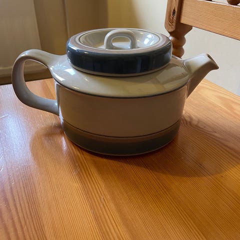 Arabian Uhtua teekannu. Erinomaisessa kunnossa oleva kokonaisuus: Kannu+sihti.kansi. Kork. 12cm, halk 16cm.