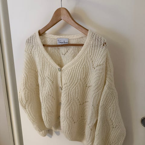 Kaunis caramel värinen neuletakki. Paksua neulosta. Itselle vähän reilun kokoinen.