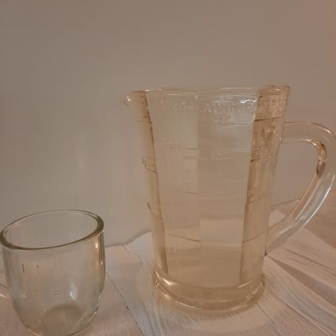 Riihimäen lasin mitta-astiat 2 kpl, hinta 40 € / kpl. Nouto / kuljetus Päijät-Hämeen alueelle pientä korvausta vastaan