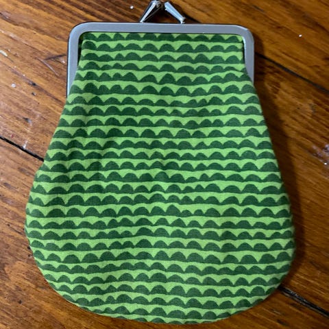 Marimekko kangas kukkaro. Pieni metallikehyksinen kukkaro, jossa on kuviollinen kangaspäällinen ja yksivärinen vuori. Sopii esimerkiksi kolikoiden, pienten tavaroiden tai korttien säilyttämiseen laukussa. Valmistettu kankaasta, kehys metallia.