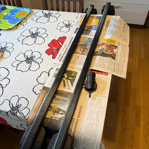 Myydään Volvon alkuperäiset kattotelineet. Volvo C40 vm 2023 katolla olleet. Sisältää lukot ja avaimet. Kunto uudenveroiset eli eivät ole olleet käytössä montaa kertaa.