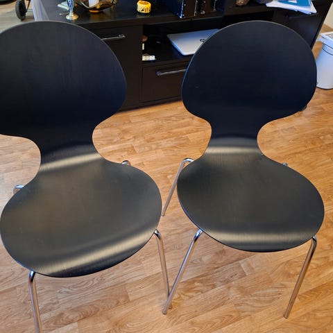 Kaksi hyvässä kunnossa olevaa mustaa tuolia. Nopea nouto.